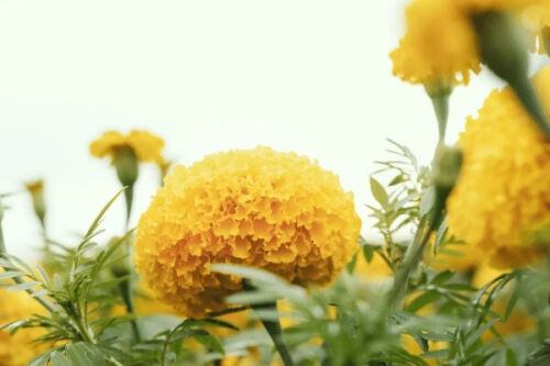 Marigold 'African Crackerjack Mixed' features impressive double blooms in vibrant yellow, gold, and orange hues. This distinguished heirloom variety, renowned as the most celebrated African marigold cultivar, produces abundant flowers on taller stems.