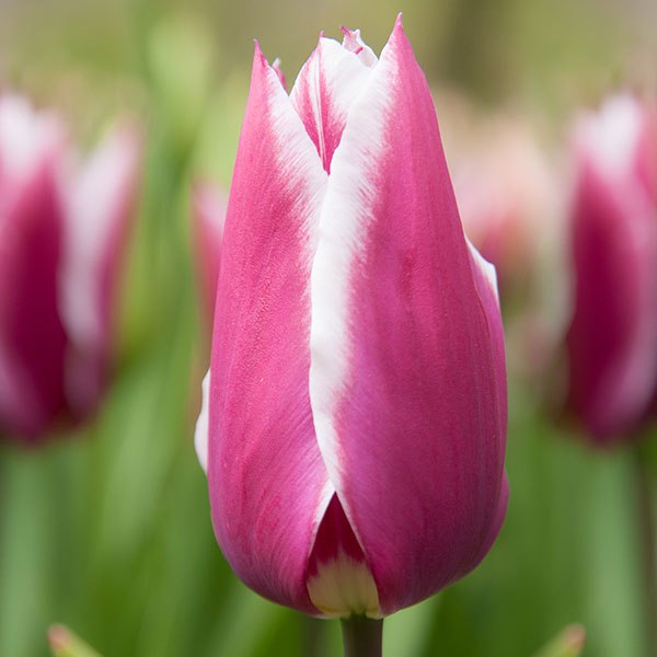 Tulip ‘Claudia’ is a striking lily-flowered tulip with slender, pointed petals in rich magenta edged with pure white. Blooming in late spring, its elegant shape and bold colouring bring height, drama, and sophistication to borders, pots, and cut flower displays. Bulb size: 10/11 cm. Grows to around 45-50cm tall.